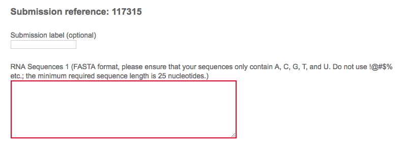 The server automatically assigns a reference number to each submission. As input the user can paste one or two RNA sequences in FASTA format into the dedicated form. Please keep in mind that the RNA sequence in the first form will be used as input for the OBE-DTW and the Fragmentation modes. When using the OBE-DTW the first sequence should be the shorter. The user can provide an email address (optional) to receive a notification when the job is completed. The algorithm will process only standard nucleotides (ACGTU). Do not use symbols like !@#$% etc.