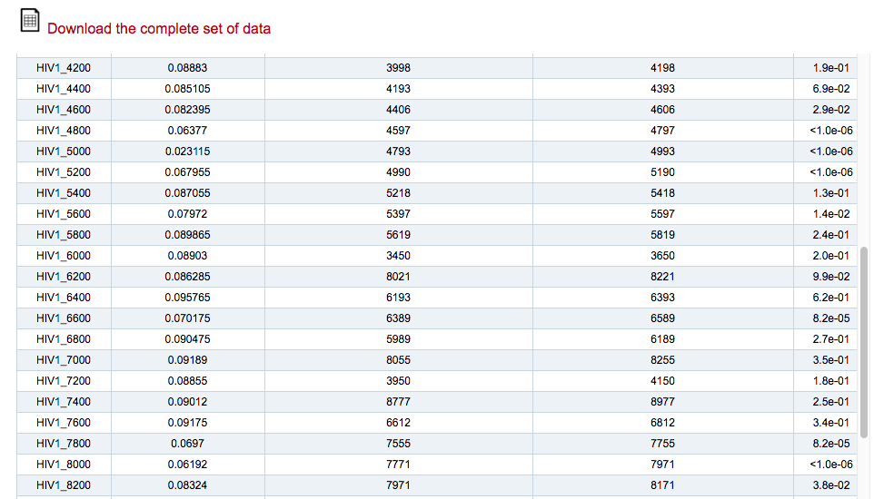 The table can also be downloaded in a .txt file.