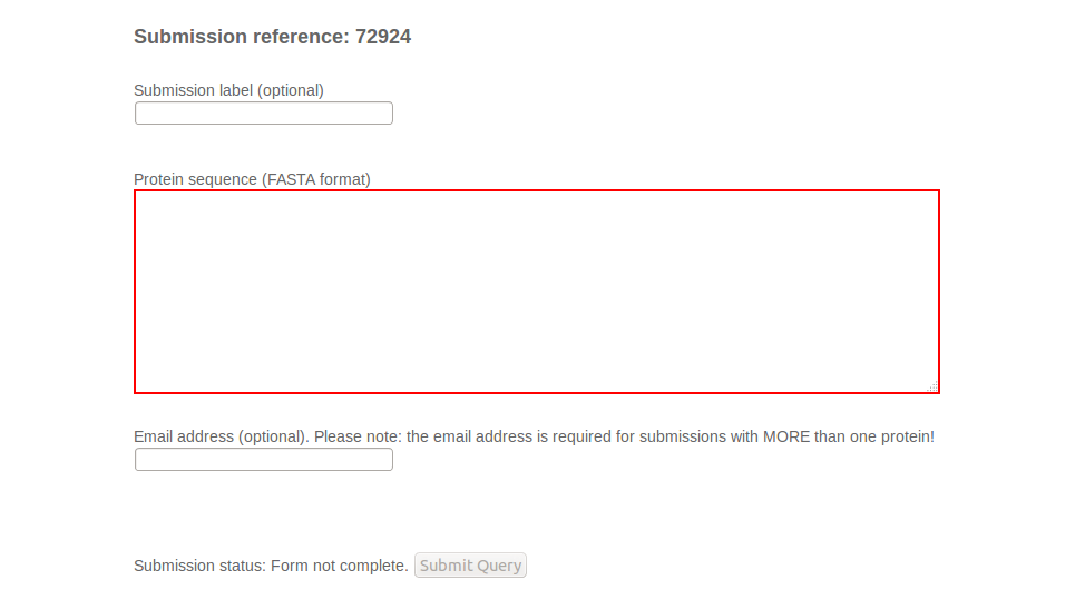 It is also possible to submit more than one protein sequence at a time. In this case, the email address is REQUIRED. The sequences (in FASTA format) can be pasted in the dedicated form and the results will be send to the user via email.